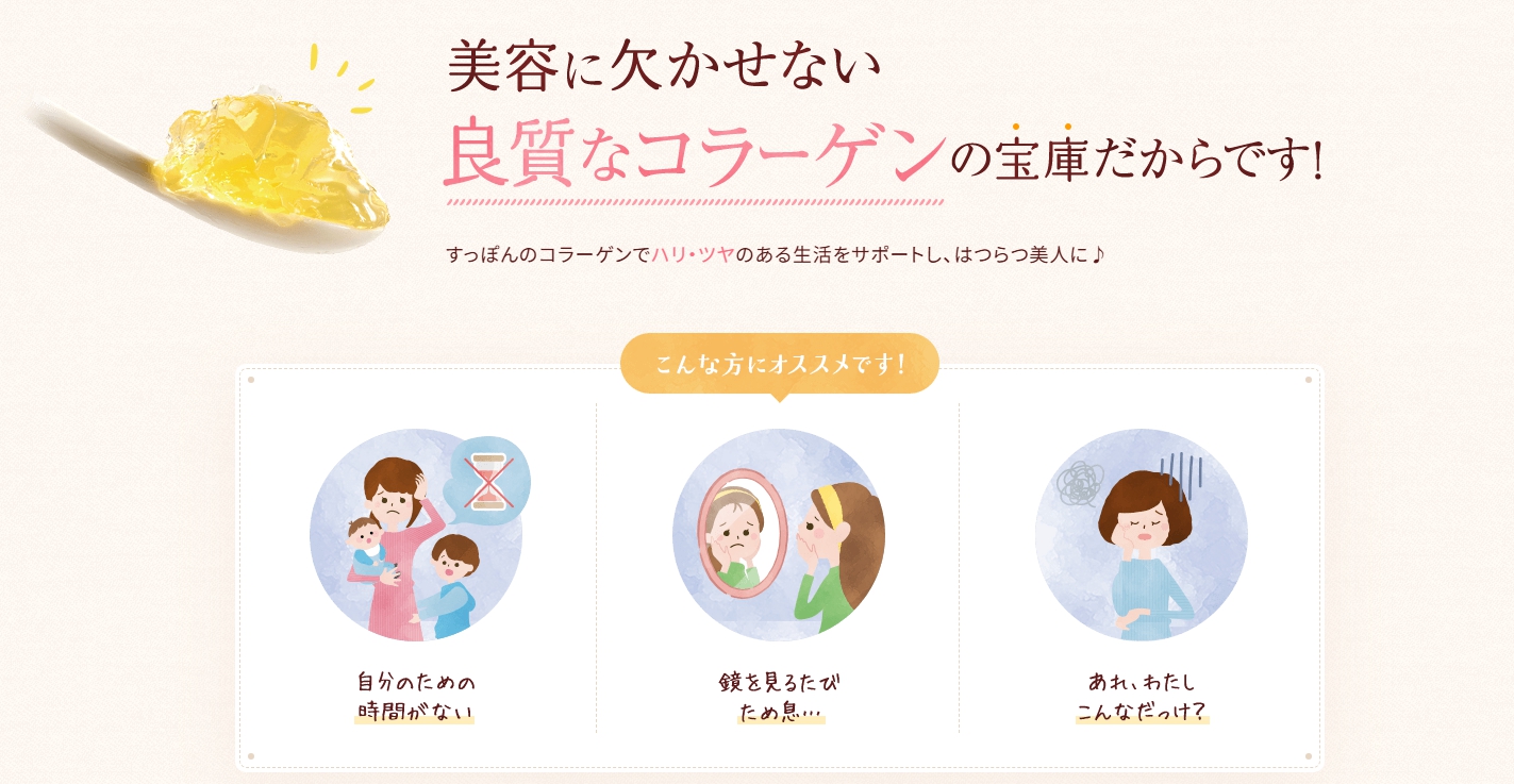確かに公式販売サイトを見ると、キレイと元気を応援する、コラーゲン量が・・・と紹介されています。